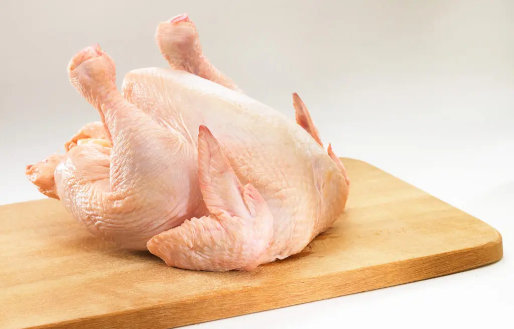 Once you remove your chicken from its packaging, rinse it inside and out with cold water and pat it dry with paper towels.
