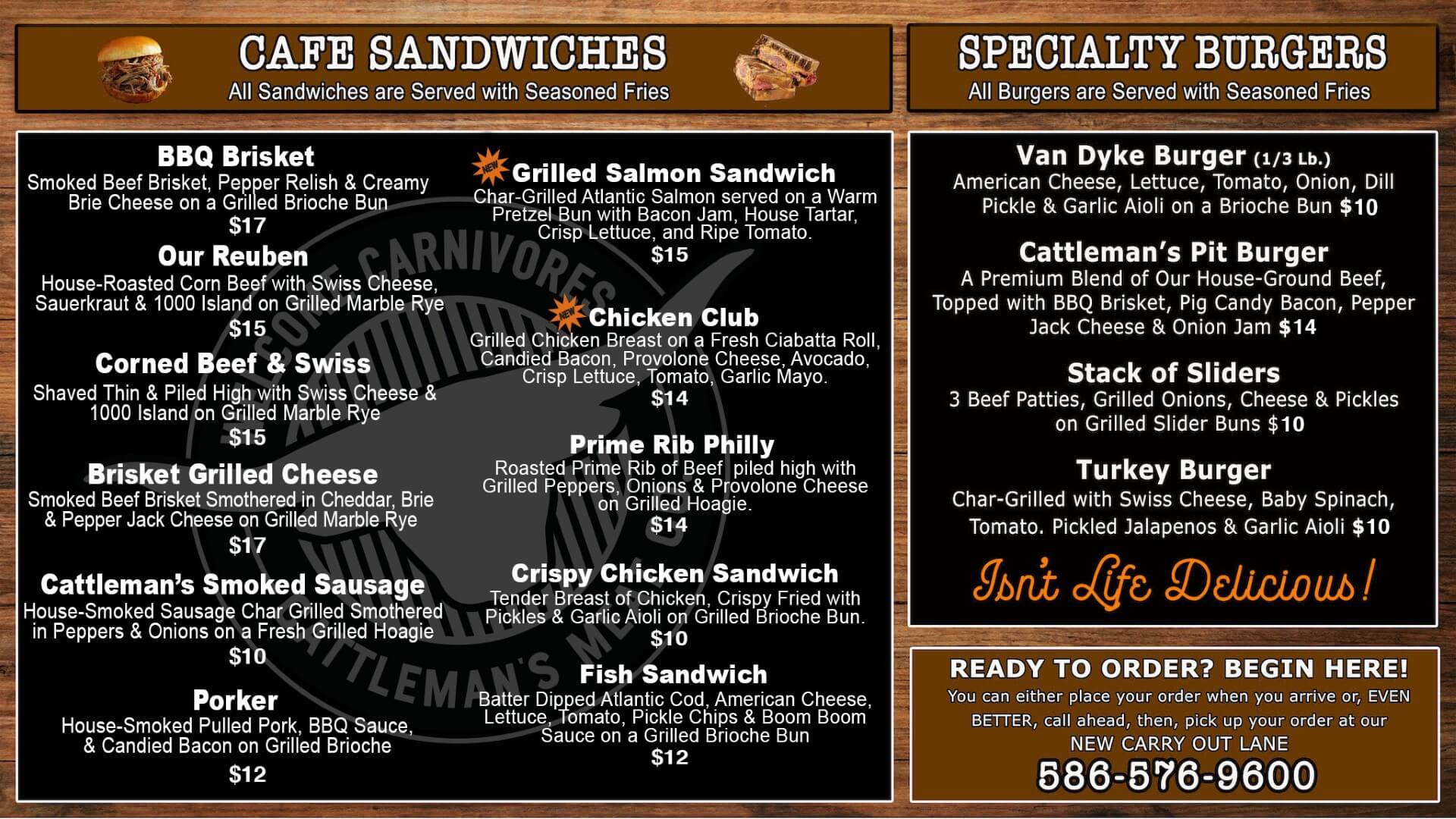 Have you ever wanted to experience just how delicious life at Cattleman’s really is? Swing by our Center Line location to experience the delectable delights of the Cattleman’s Smokehouse Cafe! Open daily, our menu boasts mouthwatering sandwiches, juicy burgers, smoked meats, and barbecue platters, along with fresh salads, soups, daily specials, and seasonal treats.